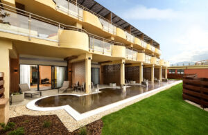Prestavba objektu je zameraná na vytvorenie ubytovacieho zariadenia s inovatívnym prepojením izieb a privátnych termálnych kúpeľov. Koncepcia vychádza z motívu tureckých kúpeľov Pamukkale v Turecku a z miestneho prírodného kontextu Bešeňovej, známej výskytom termálnej vody a travertínu. Objekt bol pôvodne jednopodlažný s podkrovím, riešený ako trojtrakt s izbami orientovanými na východ a západ. Stavebnými úpravami bol doplnený o výťah, nadstavaný na tri nadzemné podlažia a rozšírený o predsadené terasy s vaňami s termálnou vodou. Izby na prízemí umožňujú priamy vstup do bazénov, horné podlažia sú vybavené balkónmi a terasami. Urbanistická koncepcia a funkcia ubytovania zostali zachované, parkovanie je riešené v rámci existujúceho areálu. Objekt je prevádzkovo prepojený s hotelom Galéria, apartmánovým domom a vstupnou budovou vodného parku krytými chodbami. Architektúra vychádza z pozdĺžnej hmoty orientovanej v smere východ – západ, s fasádami z omietky, HPL panelov a presklených plôch, so sedlovou strechou z hliníkového plechu. Konštrukčne ide o murovanú stavbu s monolitickými železobetónovými stropmi, pilotovým založením, novým priečnym nosným systémom, železobetónovými piliermi, terasami a výťahovou šachtou z betónu C25/30.